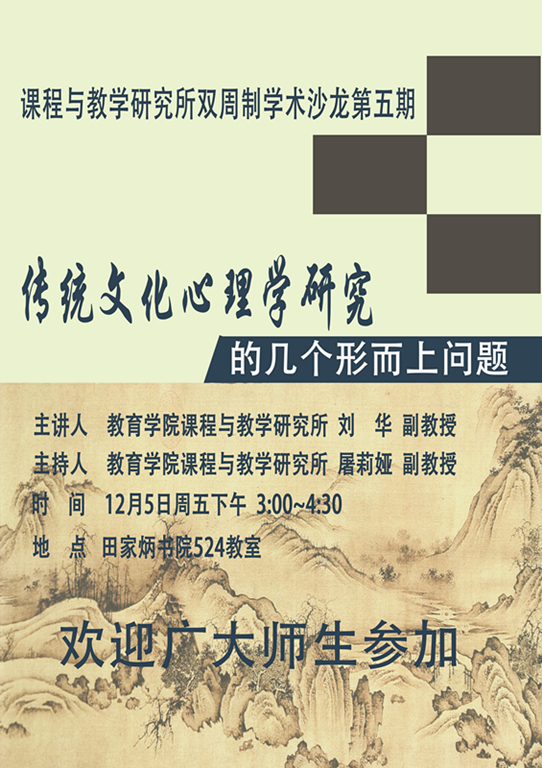 课程与教学研究所双周制师生学术沙龙(五):“传统文化心理学研究的几个形而上问题”