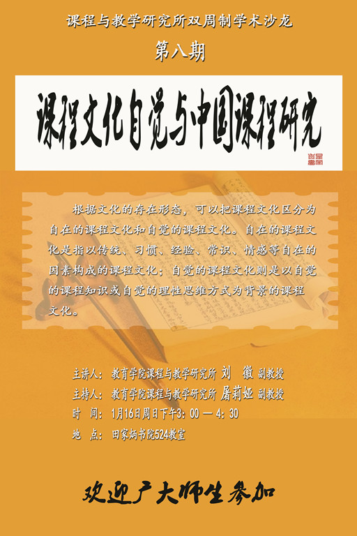 课程与教学研究所双周制师生学术沙龙第八期:“课程文化自觉与中国课程研究”