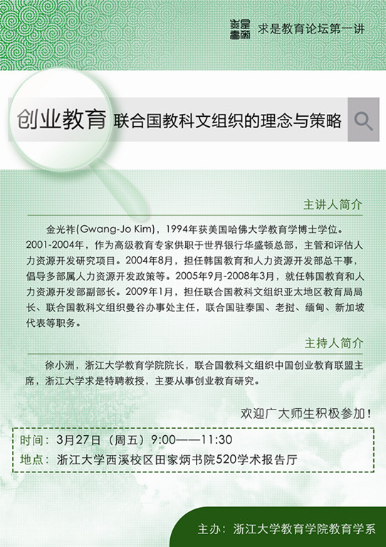 求是教育论坛第一讲――创业教育:联合国教科文组织的理念与策略