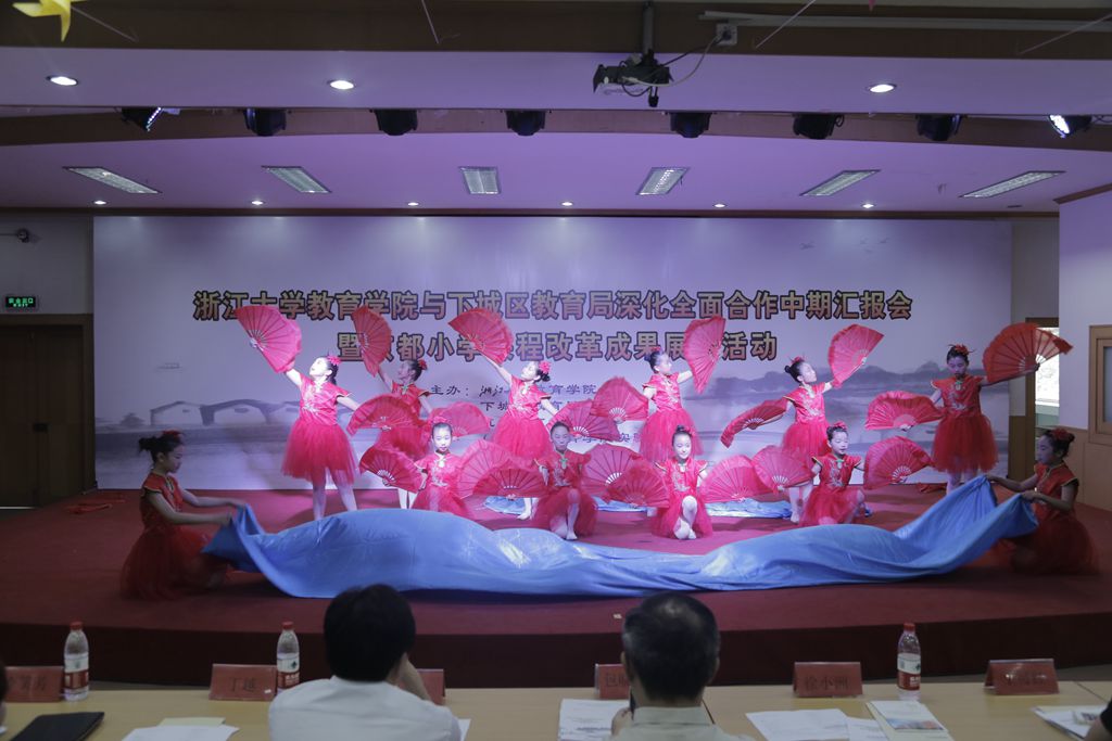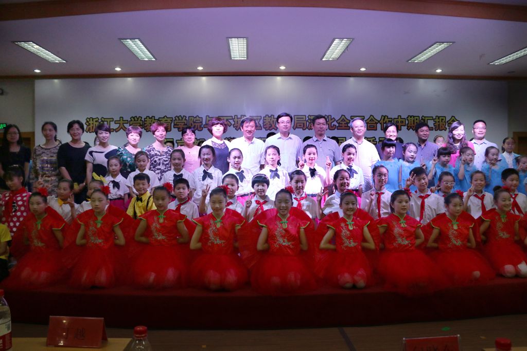 2015年6月29日,值beat365官方网站与下城区教育局签署第二轮深化全面合作协议(2013-2016)两年之际,双方在杭州市京都小学隆重举行全面深化合作中期汇报会。下城区区政府有关领导、beat365官方网站领导、下城区教育局领导、合作项目负责人及相关科室人员、京都小学部分师生参加了本次汇报会。