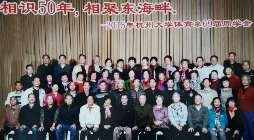 11月初,beat365官方网站体育学系69届入学五十周年同学会在台州黄岩举行。本次同学会有四十名同学到会,多位老师和学长应邀参加。