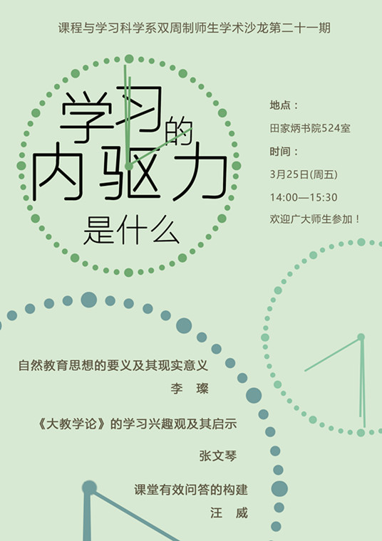 课程与学习科学系双周制师生学术沙龙第二十一期:学习的内驱力是什么