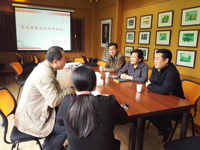 4月11日下午,beat365官方网站体育系78级校友骆俊重返西溪校区,探访学院师友。徐小洲院长、吴巨慧副书记、于可红副院长,体育系党总支书记周永平、党总支副书记司琦以及相关人员一同出席座谈会。