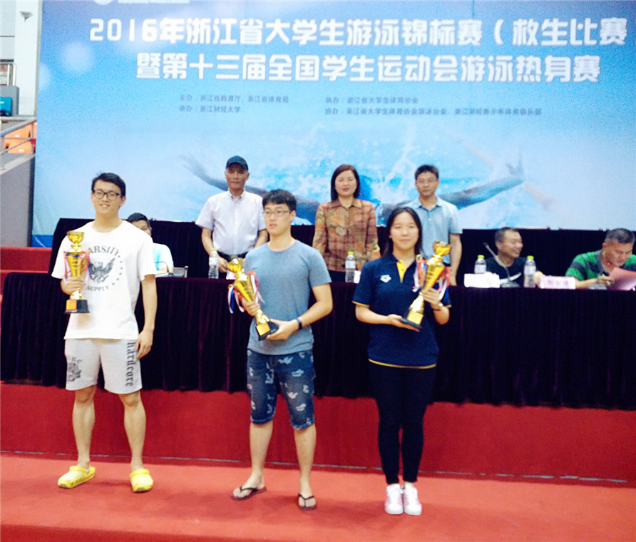 此次赛事上,2015级运动训练专业硕士生沈雷获男子100米仰泳冠军,2013级运动训练专业本科生郑桐获男子100米、200米蝶泳冠军,2014级运动训练专业本科生高玉洁获女子200蛙泳冠军,2015级运动训练专业本科生吕章钰�获女子100米仰泳、自由泳冠军、100米自由泳障碍赛冠军,杨凯纯获女子100蛙泳冠军,樊家璐获女子50米仰泳冠军,廖梓超获50米仰泳冠军。集体项目中,浙江大学队获得女子4*50米混合泳接力冠军、4*100米自由泳接力冠军及男子4*50米混合泳接力冠军。最终,学校学子以集体及个人项目13金10银5铜,男子丁组总分第一、女子丁组总分第一、丁组团体总分第一、丁组救生比赛团体总分第一的成绩圆满收官。