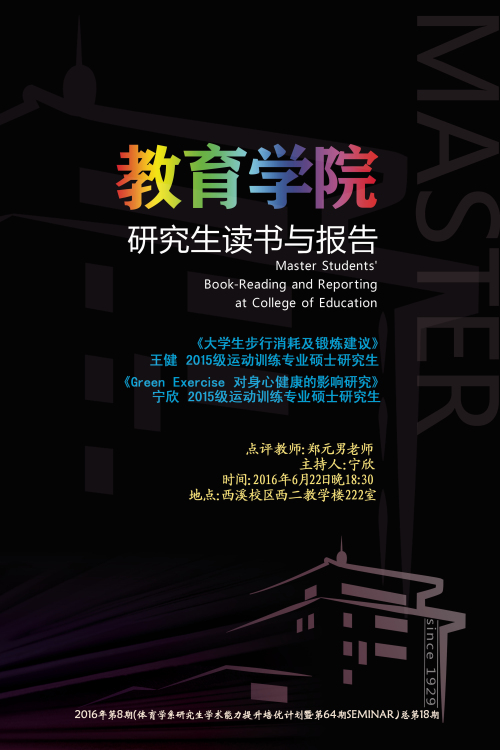 【研究生读书与报告】2016年第8期(体育学系研究生学术能力提升培优计划暨第64期SEMINAR)