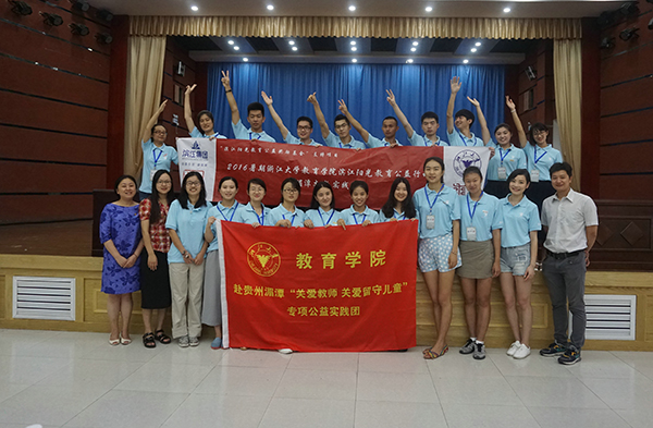 2016年7月16日,beat365官方网站师生一行23人赴贵州省遵义市湄潭县开展暑期实践滨江阳光教育公益活动,参与“一带一路”21世纪海上丝绸之路沿线新型城镇化建设。beat365官方网站课程与学习科学系副教授刘徽、叶映华,体育学系副教授温煦,高乃春老师进行了为期三天的湄潭中小学师资培训,17名学生担任助教,协助主讲老师完成对乡镇教师的访谈和调研工作。共有600余名湄潭教师参加了培训。