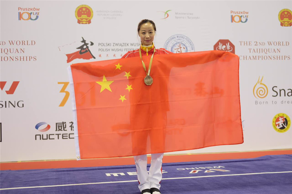 近日,第二届世界太极拳锦标赛在波兰普鲁斯科夫举行。浙江大学武术与民族传统体育专业2014级本科生戴丹丹代表中国参赛,夺得女子自选太极剑金牌。世界太极拳锦标赛是世界最高级别的太极拳单项赛事,由国际武术联合会主办,每两年一次。2016年度赛事吸引了来自中国、波兰、美国、法国、意大利等31个国家和地区的武术代表队共310名选手参加。中国队此次共派出8名队员参赛,分别参加男、女组自选太极拳、太极剑,男、女第三套国际武联规定太极剑,女子第三套国际武联规定太极拳,以及男子四十二式太极剑等项目。
