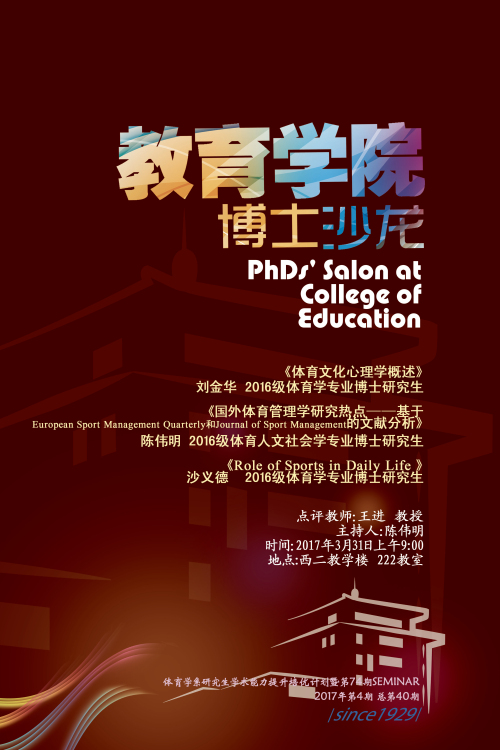 【博士沙龙】2017年第4期(体育学系研究生学术能力提升培优计划暨第74期SEMINAR)