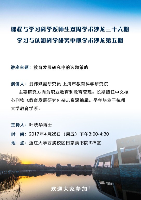 课程与学习科学系双周制师生学术沙龙第三十六期暨学习与认知科学研究中心学术沙龙第五期:教育发展研究中的选题策略