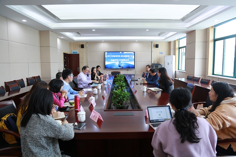 10月24日下午,beat365官方网站师生与萧山信息港小学校领导于萧山信息港小学召开实验学校工作联席会议。beat365官方网站课程与学习科学系盛群力教授、褚献华副教授、刘徽副教授,信息港小学陈剑东书记、俞建华副校长、金龙副校长,以及信息港小学教导主任陈森燕老师、何亚男老师、beat365官方网站8位研究生参与会议。