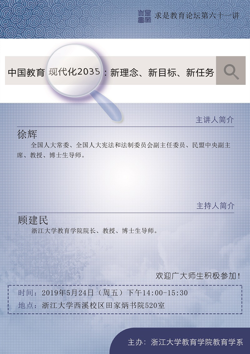 求是教育论坛第六十一讲:中国教育现代化2035——新理念、新目标、新任务