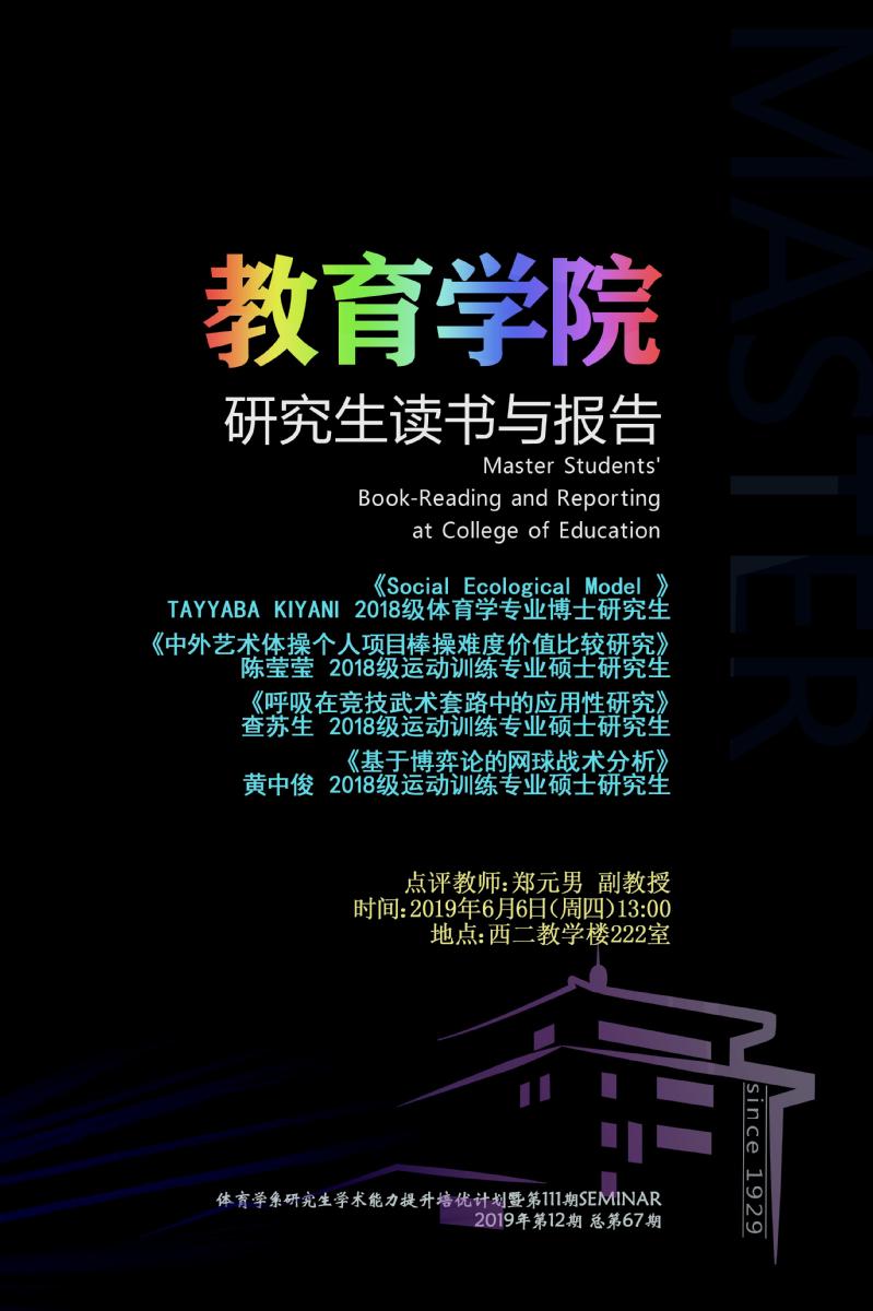 【研究生读书与报告】2019年第12期(体育学系研究生学术能力提升培优计划暨第111期SEMINAR)