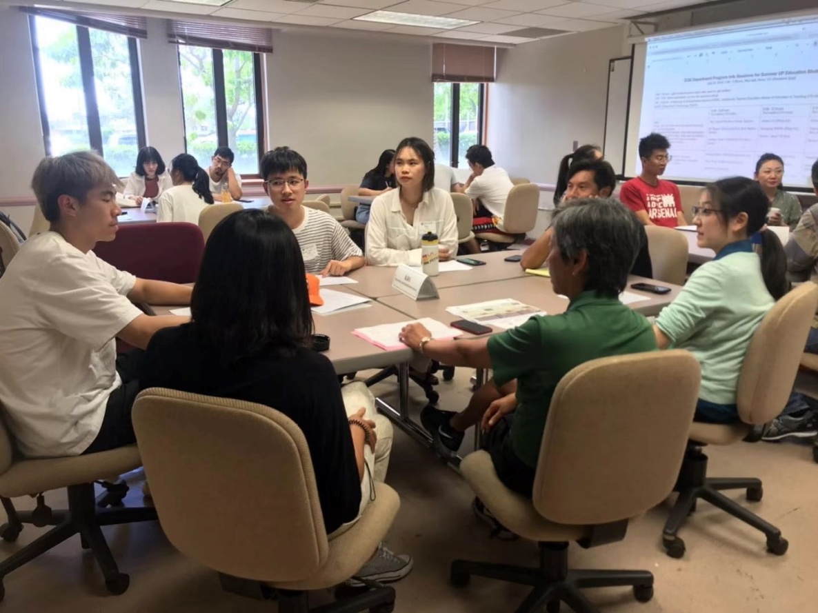 为了更加近距离、真实地体验夏威夷大学马诺阿分校的教学与课程,交流营同学进入学科教育和运动训练与康复学(KRS)课堂,感受不同的课堂氛围和教学风格。来自中国的访学学者杨帆教授给同学们作题为“为什么要做教育研究”的演讲,从自身经历着手,深入浅出地阐述了教育研究的相关要点,让同学们获益颇多。同时,同学们还通过圆桌讨论的形式,依次与教育心理学、比较教育学、教师教育、教育基础理论、运动机能与康复科学、特殊教育、教育行政、课程研究、学习设计与技术等专业的教授展开交流,了解各专业的基本信息,收获教授们的意见与建议。