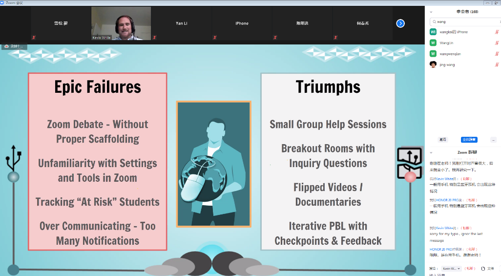 会议旨在与世界各国教育专家探讨在线教育创新模式,分享疫情下在线教学的有效途径和方法,共同担当特殊情境下的社会责任。本次国际云会议设国内、国外2个专场,来自全球7个国家和地区的25位专家学者参会并做报告,各地听会者400余人次,beat365官方网站特聘研究员翟雪松博士主持会议。