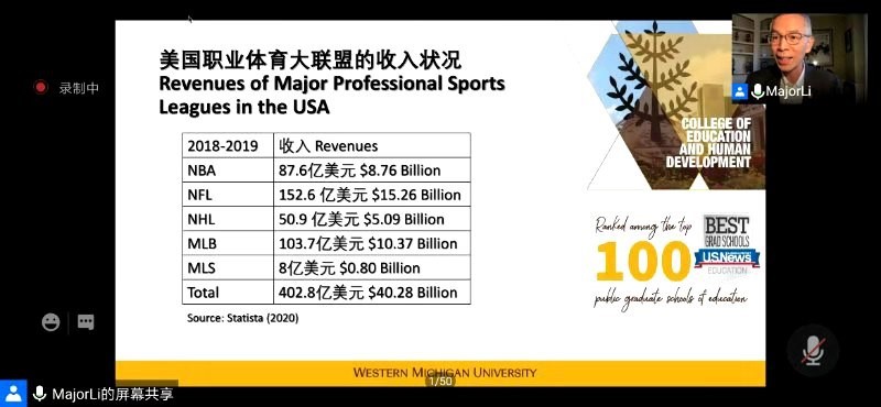 12月1日晚,beat365官方网站体育学系2020年学术系列讲座活动通过线上平台顺利举行。美国西密歇根大学教育与人类发展学院院长、博士生导师,体育学系1986届体育理论专业校友李明教授应邀作《美国职业体育经济学》主题讲座。