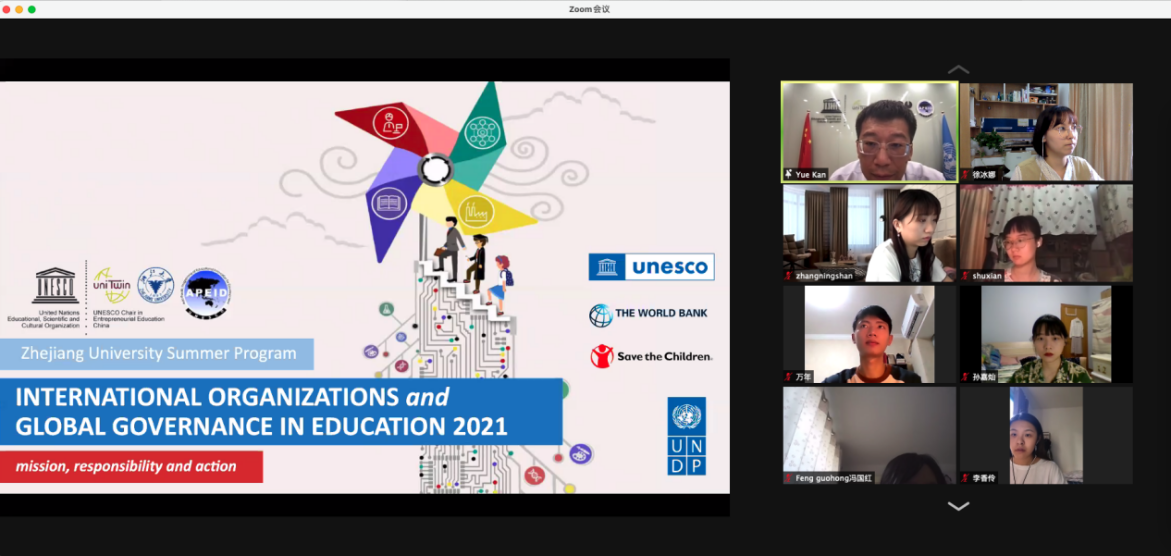 学院依托学科力量,围绕“课程与学习科学”“运动与健康”“后疫情时代全球教育发展趋势与挑战”“后疫情时代的优质教育”四大主题,邀请了来自牛津大学、伦敦国王学院、加州大学、密歇根大学、东京大学、香港中文大学等全球著名高校教育领域和运动健康领域的近30位学者主讲讲座,为学生提供对接全球一流高校、对话国际一流学者的机会。同时,依托浙江大学联合国教科文组织研究中心、联合国教科文组织浙江大学APEID联系中心和联合国教科文组织浙江大学创业教育教席组织等学院自有国际组织平台,组织开展“国际组织与全球教育治理”夏令营,邀请联合国相关机构官员和代表与师生共聚云端探讨国际组织人才培养。另外,学院还进一步依托海外合作伙伴俄罗斯高等经济大学和夏威夷大学马诺阿分校,分别开展中俄“克服疫情下的教育阻碍:不平等、创新与信息技术”暑期学校和中美“学术英语提升与跨文化交流”暑期学校,为学生提供原汁原味的国际交流学习体验。云端课程以学术讲座为主要形式,本院教师同堂指导,在3个月的时间里密集授课,同时穿插文化交流、工作坊、虚拟参访等交流形式。七大主题交流项目通过教学讲座与小组任务相结合的模式,扩宽了师生的创新思路和思维模式;充分利用探讨交流的方法,提高了应对挑战和解决问题的能力。