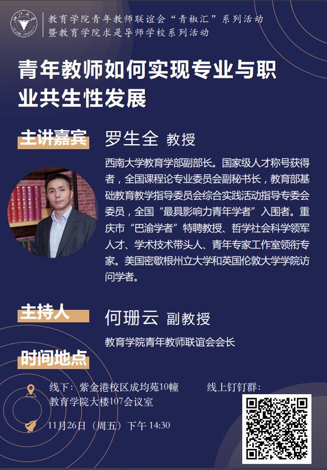 学术预告丨青年教师如何实现专业与职业共生性发展