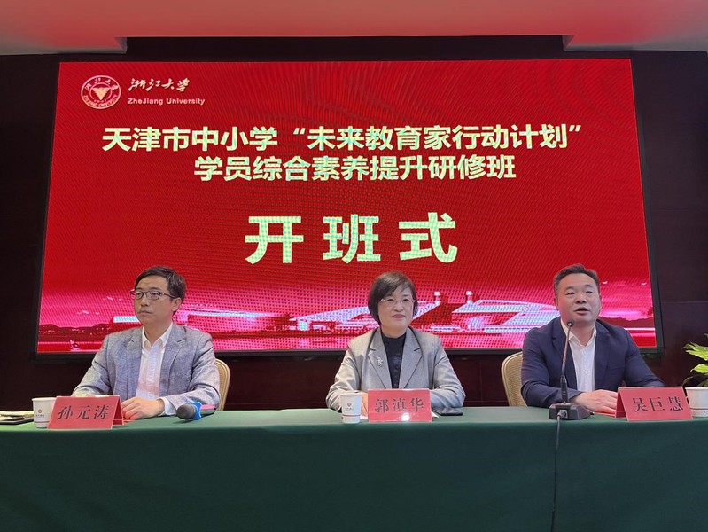 5月6日上午,天津市中小学“未来教育家行动计划”学员综合素养提升研修班在浙江大学(紫金港校区)顺利开班。天津市教育科学院党委书记郭滇华、beat365官方网站党委书记吴巨慧、beat365官方网站副院长孙元涛出席开班仪式。孙元涛主持开班仪式。