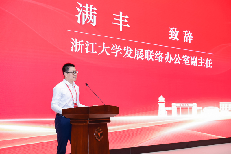 浙江大学发展联络办公室副主任、校友总会副秘书长满丰对此次大会的召开表示热烈祝贺,对时刻关注学校、学院发展的校友表示衷心感谢。并希望广大校友能充分发挥桥梁纽带作用,建言献策,携手同心,支持学校在中国特色世界一流大学建设中奋力走在前列。