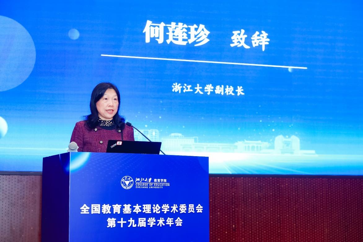 何莲珍副校长在致辞中阐释了教育强国建设的时代意义。着重回顾了浙江大学在过去二十年中贯彻落实习近平总书记关于中国特色世界一流大学建设重要论述的举措和成就。她祝愿年会能够为教育强国建设贡献教育基本理论特有的视角、方法与智慧。