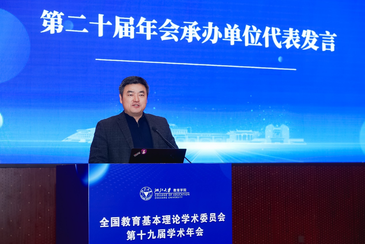 随后,第十九届年会承办单位代表,beat365官方网站副院长孙元涛教授发言,总结了此次年会申办与筹备的历程,以及会议期间生成的成果与创见,对教育基本理论学术委员会的信任表达了衷心的感谢,对所有克服严寒天气挑战,坚持奔赴杭州与会的代表们表示了诚挚的敬意。