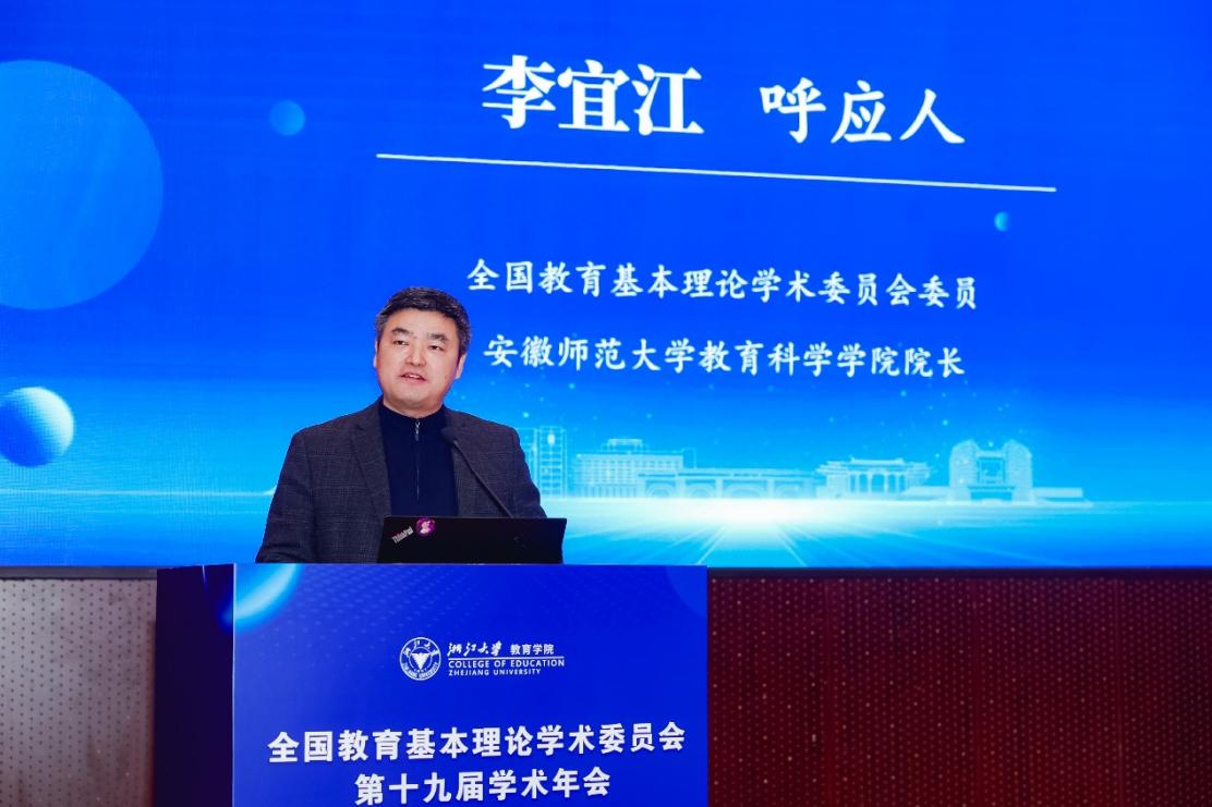 最后,第二十届年会承办单位代表,安徽师范大学教育科学学院院长李宜江教授发言。他表达了对教育基本理论学术委员会的信任,并表示安徽师范大学一定会继承、发扬历届承办单位的宝贵经验,不负重托、不负使命,把下一届年会办好,期待在2025年能与大家相聚芜湖,共话学术。