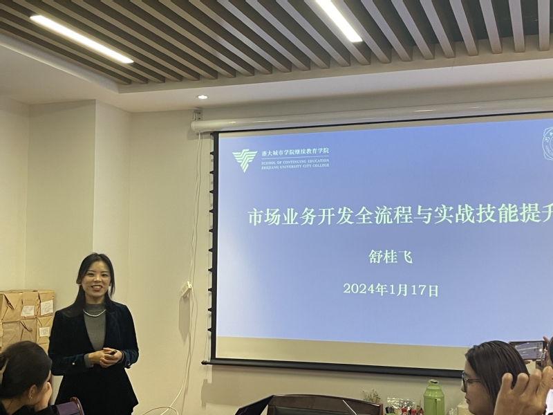 为提升团队成员的业务拓展能力,1月17日,邀请了学校城市学院继续beat365官方网站培训三部部长,原浙江大学继续beat365官方网站事业发展部主管舒桂飞老师作《市场业务开拓方法与实战技能提升》专题培训。