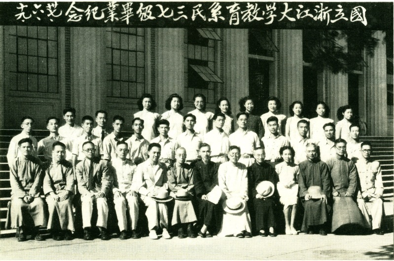 1948年6月19日国立浙江大学教育系民三七级毕业纪念(前排左起:吴向、陈学恂、王承绪、王倘、陈立、孟宪承、俞子夷、潘渊、郑晓沧、赵端瑛、朱希亮、陆永福、沈金相)