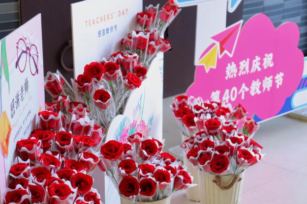 鲜花、合影、祝福……每一位老师踏入教院时都被面前的惊喜吸引。在阵阵欢声笑语中,老师们纷纷在打卡板前留下了自己的笑脸。