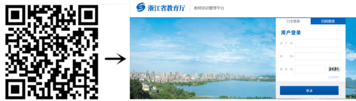步骤1:电脑网页登录浙江省教育厅教师培训管理平台:https://pxglpt.zjedu.gov.cn或移动端打开微信,扫码或搜索【浙江教育管理公共服务平台】-点击【应用中心】-选择【师训平台】-输入师训平台用户名、密码和验证码-点击【登录】。