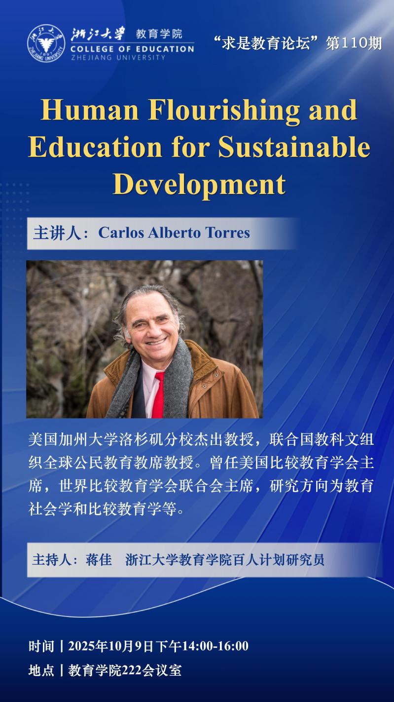 “求是教育论坛”第110期丨Carlos Alberto Torres:Human Flourishing and Education for Sustainable Development