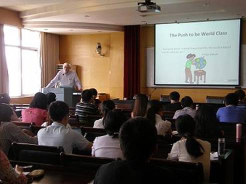 Prof. Rust began the lecture by revealing the intensified phenomenon of global university competition, like the rise of international university rankings, cross-border quality assessment and the internationalization of universities. He believed that no country feels it can do without a world class university. However, he said it was difficult to define world class, as well as to deal with the relationship between pursuing world class status and maintaining national tradition.