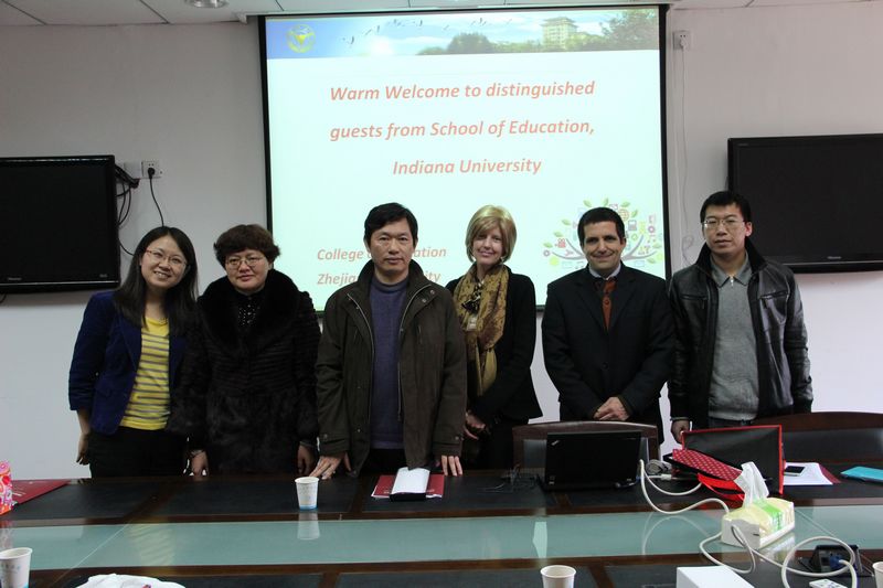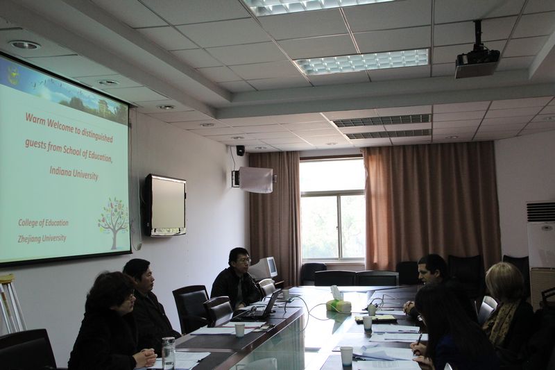 From February 23rd to February 26th, 2013, Professor and Director from the Center for East Asian Studies, Heidi Ross, Assistant Professor Adam Maltese and others from the School of Education at Indiana University (SE-IU) visited and held talks in our college. Dean and Professor Xu Xiaozhou, Director of the Department of Education, Wu Xueping, and Assistant Dean Kan Yue attended the meeting. The main purpose of the visit was to carry out three international research cooperation projects and exchange mutual views. In the morning of February 24th, both sides held talks in a warm and friendly atmosphere.